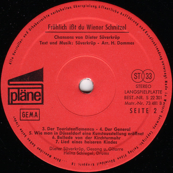 A1. Fröhlich Ißt Du Wiener Schnitzel A2. Der Landesvorratsong B3. Der Touristenflamenco B4. Der General B5. Wie Man In Düsseldorf Eine Kunstausstellung Eröffnet B6. Ballade Von Der Kirchturmuhr B7. Lied Eines Heiseren Kindes