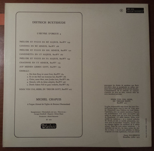 A1. Prélude Et Fugue En Ré Majeur A2. Canzona En Ré Mineur A3. Prélude Et Fugue En Sol Mineur A4. Canzonetta En Ut Majeur A5. Prélude Et Fugue En Fa Majeur A6. Chaconne En Ut Mineur B1. Auf Meinen Lieben Gott B2. Chorals B3. Nimm Von Uns, Herr, Du Treuer Gott