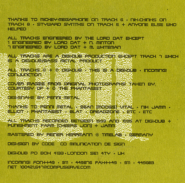 All tracks © + ℗ 1995 Digi•Dub. This is a Digidub / Incoming! conjunction. (booklet)