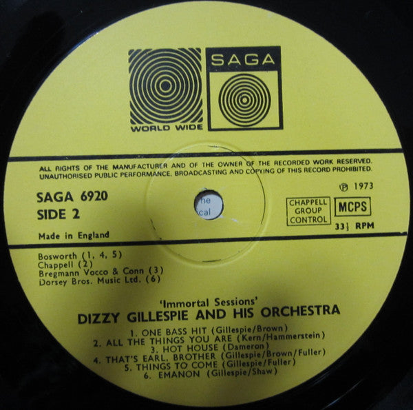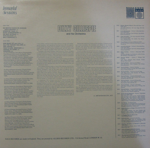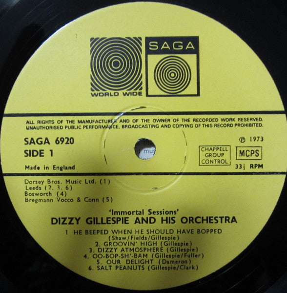 A1. He Beeped When He Shoulda Bopped 2:44 A2. Groovin' High 2:44 A3. Dizzy Atmosphere 2:49 A4. Oo Bop Sh'Bam 3:05 A5. Our Delight 2:34 A6. Salt Peanuts 3:17 B1. One Bass Hit (Part 2) 3:00 B2. All The Things You Are 2:51 B3. Hot House 3:10 B4. That's Earl, Brother 2:45 B5. Things To Come 2:48 B6. Emanon 3:10