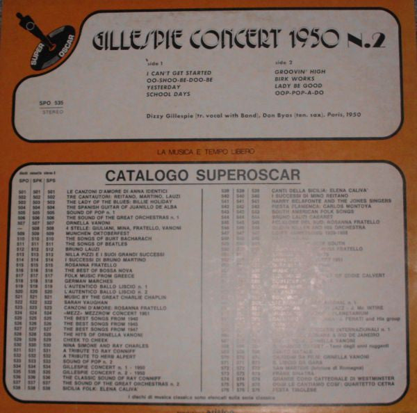 A1. I Can't Get Started A2. Oo-Shoo-Be-Doo-Be A3. Yesterday A4. School Days B1. Groovin' High B2. Birk Works B3. Lady Be Good B4. Oop-Pop-A-Do