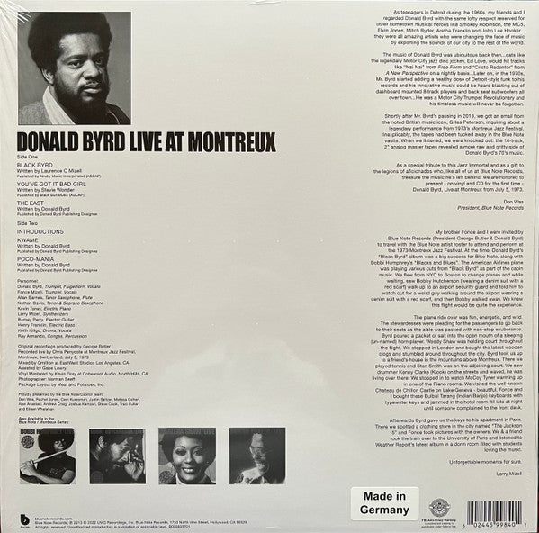 Record Company Blue Note Records Published By Alruby Music, Inc. Published By Black Bull Music Published By Donald Byrd Publishing Designee Recorded At Montreux Jazz Festival Mixed At Eastwest Studios Mastered At Cohearent Audio Lacquer Cut At Cohearent Audio Designed At Meat And Potatoes, Inc. Pressed By Schallplattenfabrik Pallas GmbH Phonographic Copyright (p) UMG Recordings, Inc. Copyright (c) UMG Recordings, Inc.