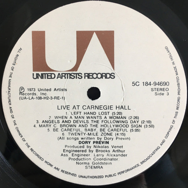 Dory Previn - Live At Carnegie Hall (2xLP, Album, Gat)