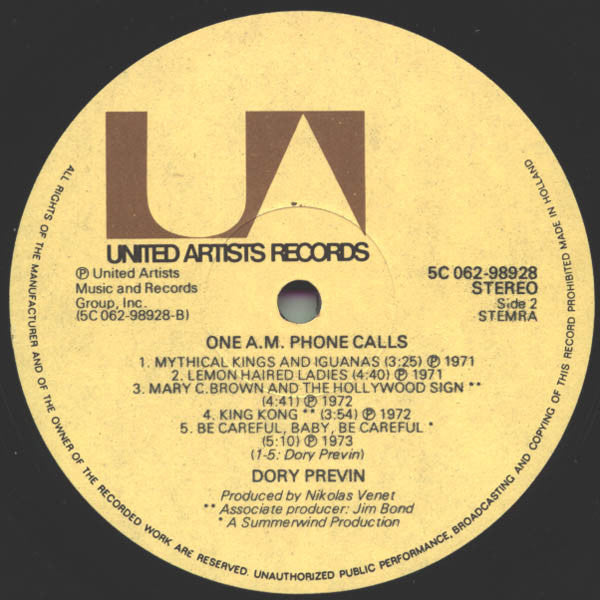 on spine: 5 C062-98928 Dory Previn-One A.M. Phonecalls United Artists