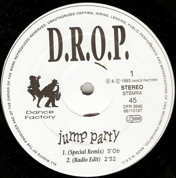 A1. Jump Party (Special Remix) 5:06 A2. Jump Party (Radio Edit) 2:52 B1. Jump Party (Original Mix) 5:12 B2. Jump Party (Techno Mix) 6:12