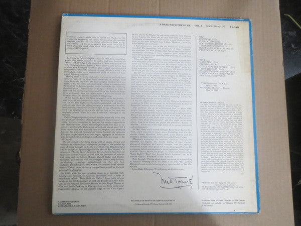 A1. Blutopia 4:13 A2. Clementine 2:48 A3. Sentimental Journey 2:24 A4. Three Cent Stomp 3:35 A5. Black And Tan Fantasy 5:18 A6. Frantic Fantasy 4:29 B1. Mainstem 3:14 B2. Perdido 5:30 B3. Pitter Panther Patter 2:11 B4. I Should Care 2:43 B5. In A Sentimental Mood 2:43 B6. It Don't Mean A Thing 3:54 B7. In My Solitude 4:22