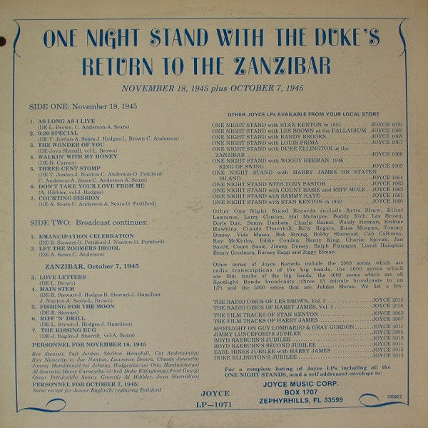 A1. As Long As I Live A2. 9:20 Special A3. The Wonder Of You A4. Walkin' With My Honey A5. Three Cent Stomp A6. Don't Take Your Love From Me A7. Courting Session B1. Emancipation Celebration B2. Let The Zoomers Drool B3. Love Letters B4. Main Stem B5. Fishing For The Moon B6. Riff 'n' Drill B7. The Kissing Bug