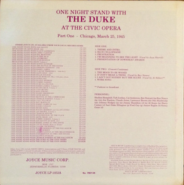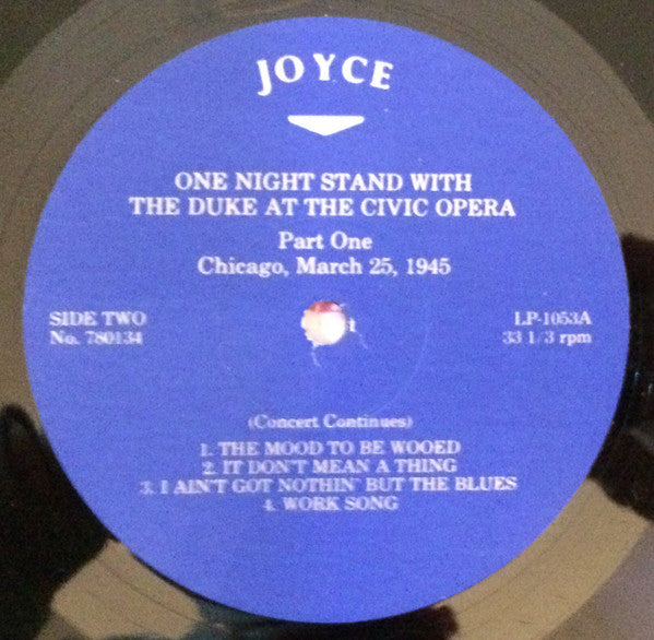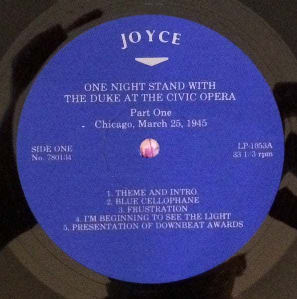 A1. Theme And Intro A2. Blue Cellophane A3. Frustration A4. I'm Beginning To See The Light A5. Presentation Of Downbeat Awards B1. The Mood To Be Wooed B2. It Don't Mean A Thing B3. I Ain't Got Nothin' But The Blues B4. Work Song