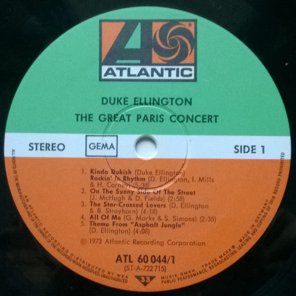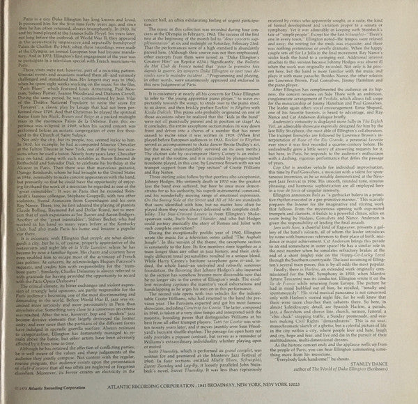 A1. Kinda Dukish 5:38 A2. On The Sunny Side Of The Street 2:58 A3. The Star-Crossed Lovers 4:18 A4. All Of Me 2:35 A5. Theme From " Asphalt Jungle" 4:08 B1. Concernto For Cootie 2:31 B2. Tuttie For Cootie 4:51 B3. Suite Thursday In Four Movements 16:59 B3a. Misfit Blues B3b. Schwiphti B3c. Zweet Zurzday B3d. Lay-By C1. Perdido 5:22 C2. The Eighth Veil 2:33 C3. Rose Of The Rio Grande 2:41 C4. Cop Out 6:58 C5. Bula 4:42 D1. Jam With Sam 3:51 D2. Happy-Go-Lucky Local 3:25 D3. Tone Parallel To Harlem 14:05