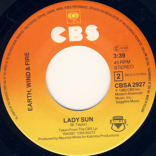 Produced For Kalimba Productions Phonographic Copyright (p) CBS Inc. Copyright (c) CBS Inc. Published By Saggifire Music Published By Yougoulei Music Published By Wenkewa Music Published By Modern American Music, Inc. Published By Saggifire Music Pressed By CBS, Haarlem Manufactured By CBS, Haarlem