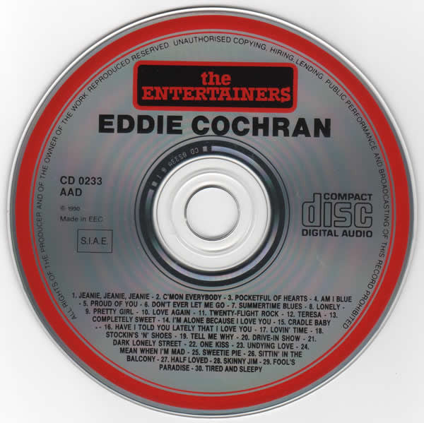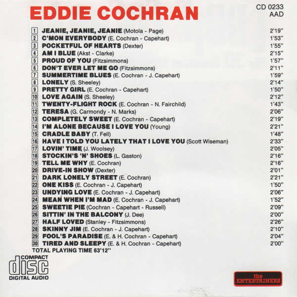 1. Jeanie, Jeanie, Jeanie 2:192. C'mon Everybody 1:533. Pocketful Of Hearts 1:554. Am I Blue 2:155. Proud Of You 1:576. Don't Ever Let Me Go 2:117. Summertime Blues 1:598. Lonely 2:149. Pretty Girl 1:5010. Love Again 2:1211. Twenty-Flight Rock 1:4312. Teresa 2:0813. Completely Sweet 2:1914. I'm Alone Because I Love You 2:2115. Cradle Baby 1:4816. Have I Told You Lately That I Love You 2:3317. Lovin' Time 2:0518. Stockin's 'N' Shoes 2:1619. Tell Me Why 2:1620. Drive-In Show 2:0121. Dark Lonely Street 2:2122. One Kiss 1:5023. Undying Love 2:0624. Mean When I'm Mad 1:5225. Sweetie Pie 2:0926. Sittin' In The Balcony 2:0027. Half Loved 2:2628. Skinny Jim 2:1029. Fool's Paradise 2:0430. Tired And Sleepy 2:00