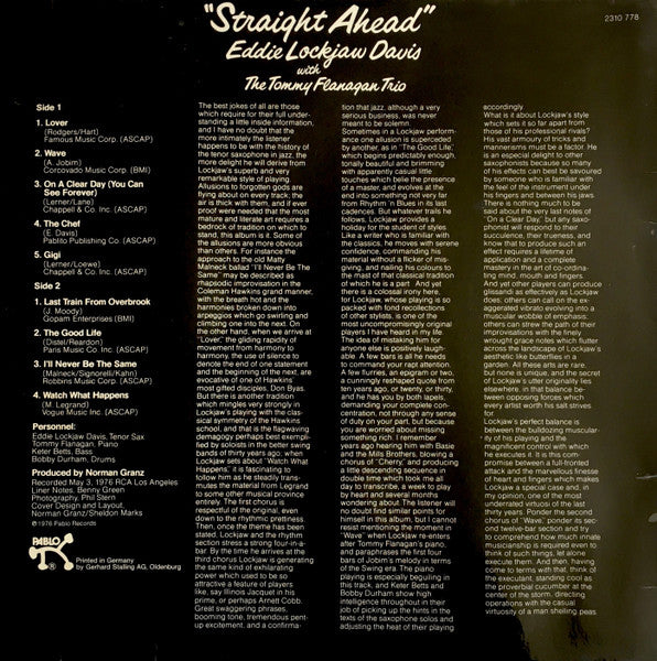 Phonographic Copyright (p) Pablo Records Printed By Gerhard Stalling AG Published By Famous Music Corporation Published By Corcovado Music Corp. Published By Chappell & Co., Inc. Published By Pablito Publishing Co. Published By Gopam Enterprises Published By Paris Music Co., Inc. Published By Robbins Music Corp. Published By Vogue Music, Inc. Recorded At RCA Studios, Hollywood Lacquer Cut At Phonodisc GmbH Pressed By Phonodisc GmbH