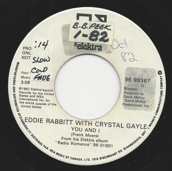 Eddie Rabbitt With Crystal Gayle - You And I / All My Life All My Love (7", Single, Mono, Promo)
