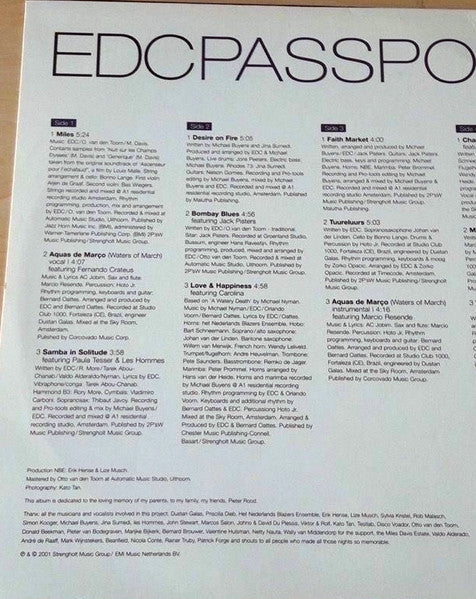 A1. Miles 5:24 A2. Aquas De Março (Waters Of March) (Vocal) 4:07 A3. Samba In Solitude 3:58 B1. Desire On Fire 5:05 B2. Bombay Blues 4:56 B3. Love & Happiness 4:58 C1. Faith Market 4:00 C2. Tuureluurs 5:03 C3. Aquas De Março (Waters Of March) (Instrumental I) 4:16 D1. Changes 3:51 D2. Mato Grosso 5:58 D3. Virgem Da Lua (Virgin Of The Moon) 4:40 D4. This Time 6:11