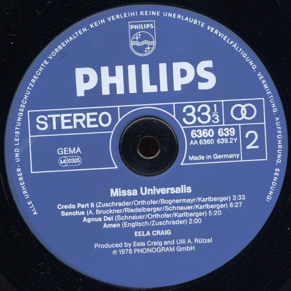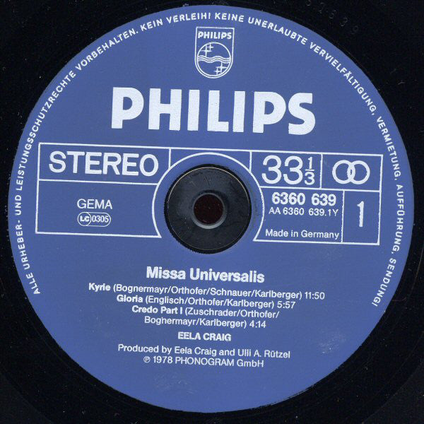 A1. Kyrie 11:50 A2. Gloria 5:57 A3. Credo Part I 4:14 B1. Credo Part II 3:30 B2. Sanctus 8:27 B3. Agnus Dei 5:20 B4. Amen 2:00