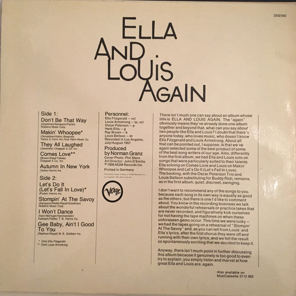 A1. Don't Be That Way A2. Makin' Whoopee A3. They All Laughed A4. Comes Love A5. Autumn In New York B1. Let's Do It (Let's Fall In Love) B2. Stompin' At The Savoy B3. I Won't Dance B4. Gee, Baby, Ain't I Good To You?