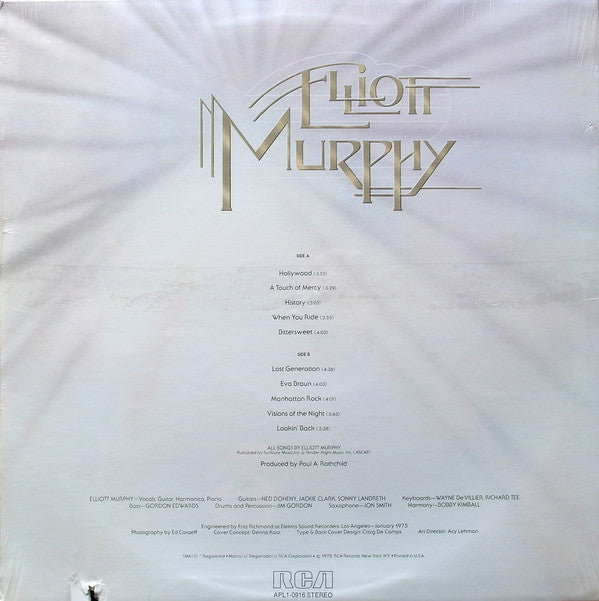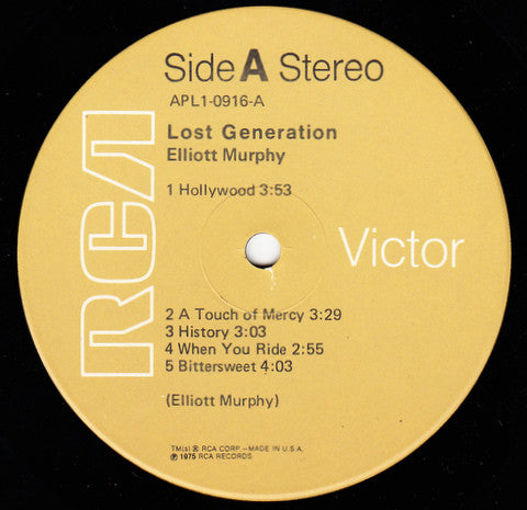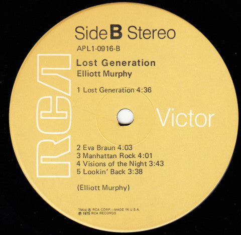 A1. Hollywood 3:53 A2. A Touch Of Mercy 3:29 A3. History 3:03 A4. When You Ride 2:55 A5. Bittersweet 4:03 B1. Lost Generation 4:36 B2. Eva Braun 4:03 B3. Manhattan Rock 4:01 B4. Visions Of The Night 3:43 B5. Lookin' Back 3:38