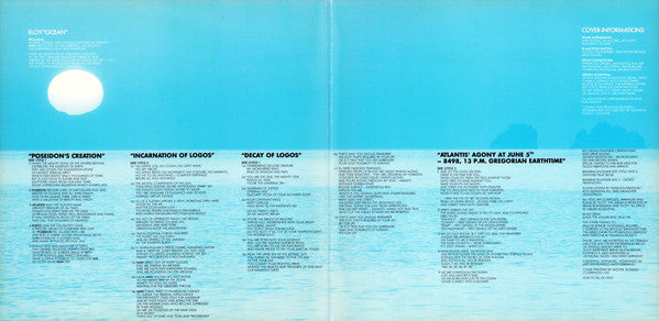 Some records were issued with a German prologue and translation by typewriter, made by Jürgen Rosenthal (Eloy). It is printed on additional DIN A4 sheets as visible on images.