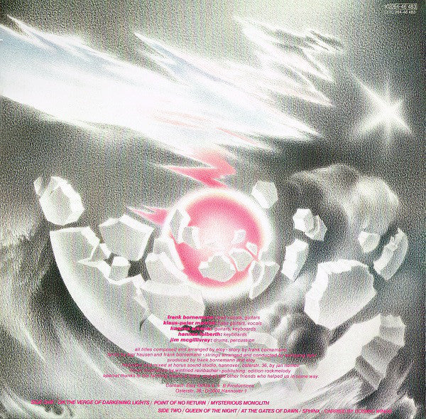 Gatefold sleeve with written prologue to the concept in English and in German. Printed inner sleeve with lyrics in English and in German. The album title is misprinted on labels as "Planets I". ℗ 1981 EMI Electrola GmbH Printed in Germany by 4P NICOLAUS GmbH, Köln Made in Germany