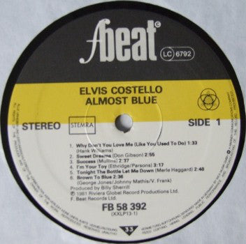 The artist is "Elvis Costello" on both labels and "Elvis Costello And The Attractions" on the cover spine.