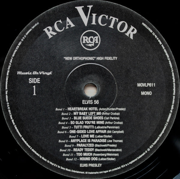A1. Elvis Presley - Heartbreak Hotel A2. Elvis Presley - My Baby Left Me A3. Elvis Presley - Blue Suede Shoes A4. Elvis Presley - So Glad You're Mine A5. Elvis Presley - Tutti Frutti A6. Elvis Presley - One-Sided Love Affair A7. Elvis Presley, The Jordanaires - Love Me 2:43 A8. Elvis Presley, The Jordanaires - Anyplace Is Paradise A9. Elvis Presley, The Jordanaires - Paralyzed A10. Elvis Presley - Ready Teddy A11. Elvis Presley, The Jordanaires - Too Much 2:31 A12. Elvis Presley, The Jordanaires - Hound Dog B1. Elvis Presley, The Jordanaires - Anyway You Want Me (That's How I Will Be) B2. Elvis Presley, The Jordanaires - Don't Be Cruel B3. Elvis Presley - Lawdy, Miss Clawdy B4. Elvis Presley - Shake, Rattle And Roll (Alternate Take 8) B5. Elvis Presley - I Want You, I Need You, I Love You B6. Elvis Presley - Rip It Up B7. Elvis Presley - Heartbreak Hotel (Alternate Take 5) B8. Elvis Presley - I Got A Woman B9. Elvis Presley - I Was The One B10. Elvis Presley - Money Honey