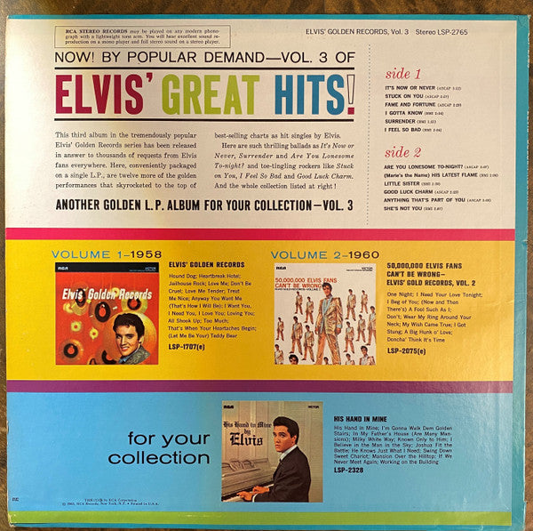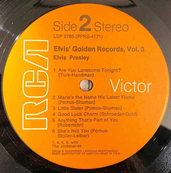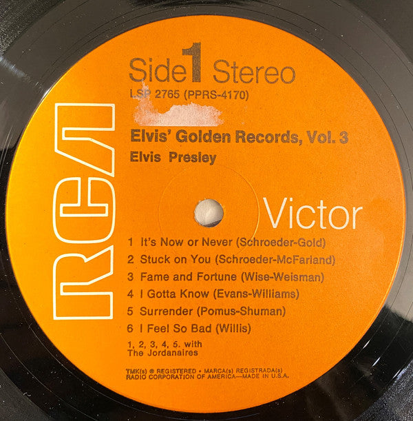 A1. It's Now Or Never 3:12 A2. Stuck On You 2:17 A3. Fame And Fortune 2:29 A4. I Gotta Know 2:14 A5. Surrender 1:51 A6. I Feel So Bad 2:54 B1. Are You Lonesome To-Night? 3:07 B2. (Marie's The Name) His Latest Flame 2:06 B3. Little Sister 2:30 B4. Good Luck Charm 2:23 B5. Anything That's Part Of You 2:03 B6. She's Not You 2:07