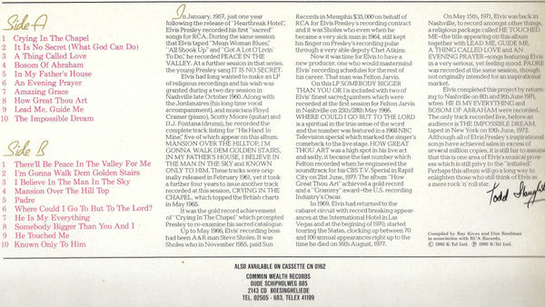 A1. Crying In The Chapel A2. It Is No Secret (What God Can Do) A3. A Thing Called Love A4. Bosom Of Abraham A5. In My Father's House A6. An Evening Prayer A7. Amazing Grace A8. How Great Thou Art A9. Lead Me, Guide Me A10. The Impossible Dream B1. There'll Be Peace In The Valley For Me B2. I'm Gonna Walk Dem Golden Stairs B3. I Believe In The Man In The Sky B4. Mansion Over The Hill Top B5. Padre B6. Where Could I Go To But To The Lord? B7. He Is My Everything B8. Somebody Bigger Than You And I B9. He Touched Me B10. Known Only To Him