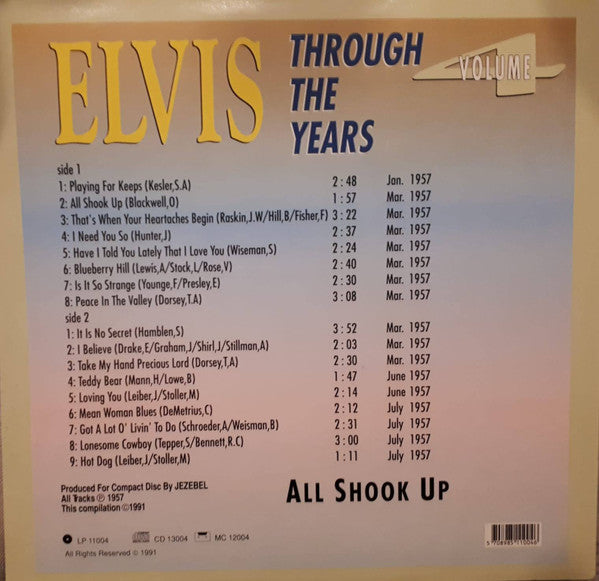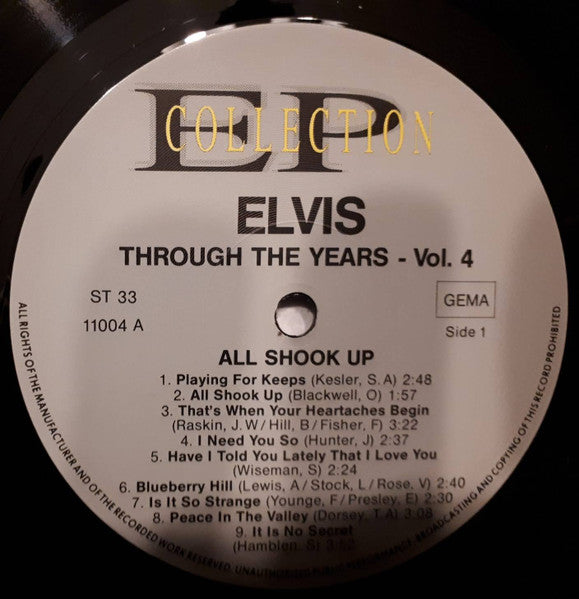 A1. Playing For Keeps 2:48 A2. All Shook Up 1:57 A3. That's When Your Heartaches Begin 3:22 A4. I Need You So 2:37 A5. Have I Told You Lately That I Love You 2:24 A6. Blueberry Hill 2:40 A7. Is It So Strange 2:30 A8. Peace In The Valley 3:08 B1. It Is No Secret 3:52 B2. I Believe 2:03 B3. Take My Hand Precious Lord 2:30 B4. Teddy Bear 1:47 B5. Loving You 2:14 B6. Mean Woman Blues 2:12 B7. Got A Lot O' Livin' To Do 2:31 B8. Lonesome Cowboy 3:00 B9. Hot Dog 1:11