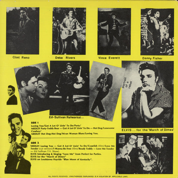 A1a. Loving You A1b. Got A Lot O’ Livin’ To Do A1c. Party . Medley . Medley . Medley B2. Introducing & Singing Love Me B3. Elvis For The March Dimes B4. Blue Moon Of Kentucky