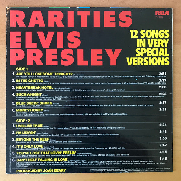 A1. Elvis Presley - Are You Lonesome Tonight? 2:51 A2. Elvis Presley - In The Ghetto 2:37 A3. Elvis Presley - Heartbreak Hotel 2:00 A4. Elvis Presley - Such A Night 2:23 A5. Elvis Presley - Blue Suede Shoes 2:37 A6. Elvis Presley, Freddy Martin And His Orchestra - Money Honey 2:21 B1. Elvis Presley - I Will Be True 2:34 B2. Elvis Presley - I'm Leavin' 3:48 B3. Elvis Presley - Beyond The Reef 3:06 B4. Elvis Presley - It's Only Love 2:42 B5. Elvis Presley - You've Lost That Lovin' Feelin' 4:15 B6. Elvis Presley - Can't Help Falling In Love 1:48