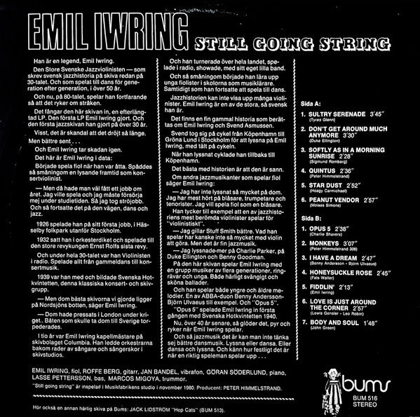 A1. Sultry Serenade 3:45 A2. Don't Get Around Anymore 3:30 A3. Softly As In A Morning Sunrise 2:28 A4. Quintus 2:36 A5. Stardust 2:52 A6. Peanut Vendor 2:57 B1. Opus 5 2:38 B2. Monkeys 3:07 B3. I Have A Dream 2:47 B4. Honeysuckle Rose 2:45 B5. Fiddlin' 2:13 B6. Love Is Just Around The Corner 2:57 B7. Body And Soul 1:46