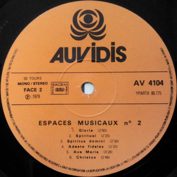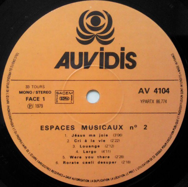 A1. Jésus Ma Joie 3:06 A2. Cri A La Vie 2:22 A3. Louange 2:12 A4. Largo 4:11 A5. Were You There 2:28 A6. Rorate Caeli Desuper 2:18 B1. Gloria 2:50 B2. Spiritual 2:25 B3. Spiritus Domini 2:39 B4. Adeste Fideles 3:28 B5. Ave Maria 3:28 B6. Christus 2:48