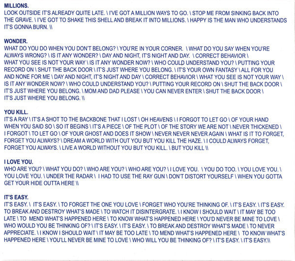 Track 10 contains a hidden track (track 10.2). Track 10.1 lasts for 2:45 before a period of silence.