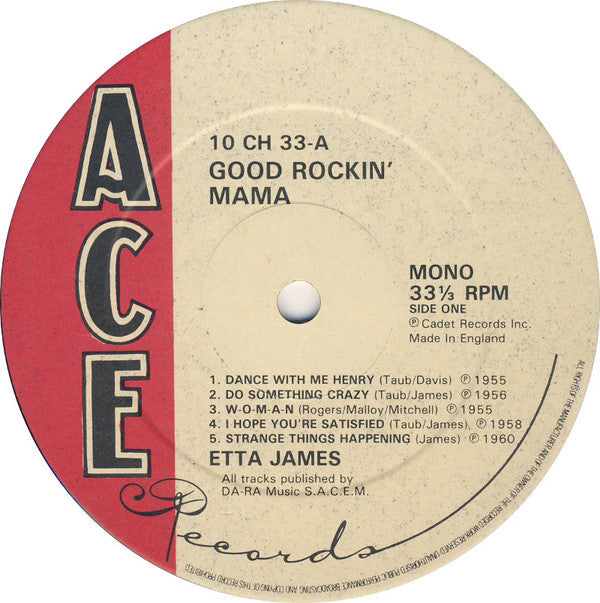 Phonographic Copyright (p) Cadet Records, Inc. Copyright (c) Ace Records (22) Mastered At The Music Centre, Wembley Lacquer Cut At De Lane Lea Music Centre Pressed By Lyntone Recordings Ltd. Pressed By Lyntone Recordings Ltd.
