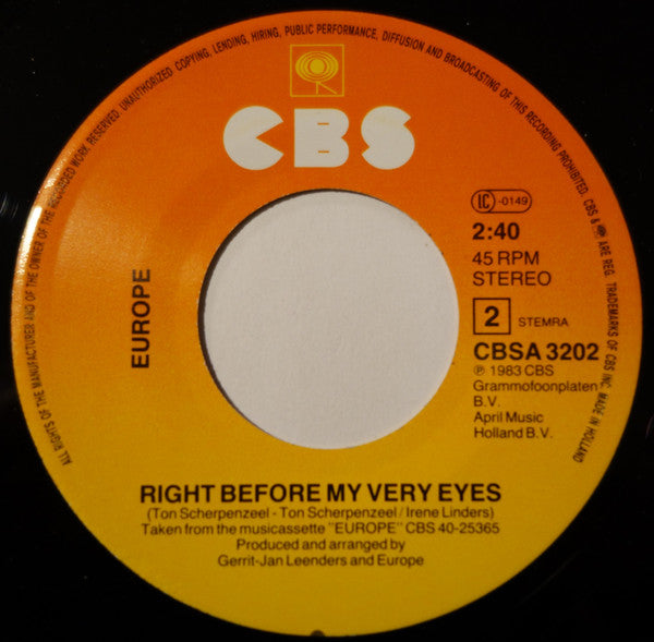Side B: Taken from the musicassette "Europe" CBS 40-25365