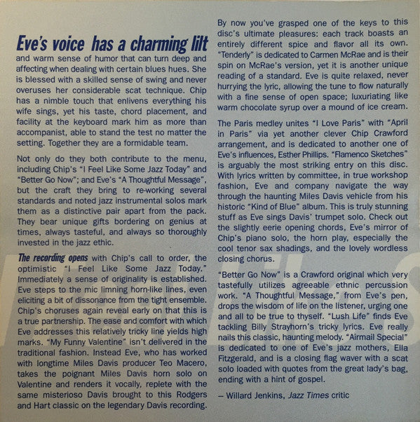 1. I Feel Like Some Jazz Today 7:422. My Funny Valentine 8:383. Tenderly 6:004. I Love Paris/April In Paris 7:455. Flamenco Sketches 6:426. Better Go Now 11:457. A Thoughtful Message 4:008. Lush Life 4:219. Airmail Special 5:24