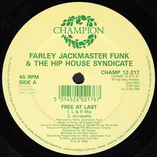 Farley "Jackmaster" Funk & The Hip House Syndicate - Free At Last (12")