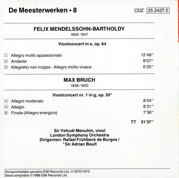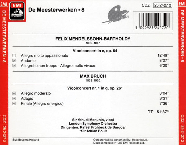 . Vioolconcert in e, op. 64 . Vioolcontert nr. 1 in g, op 26