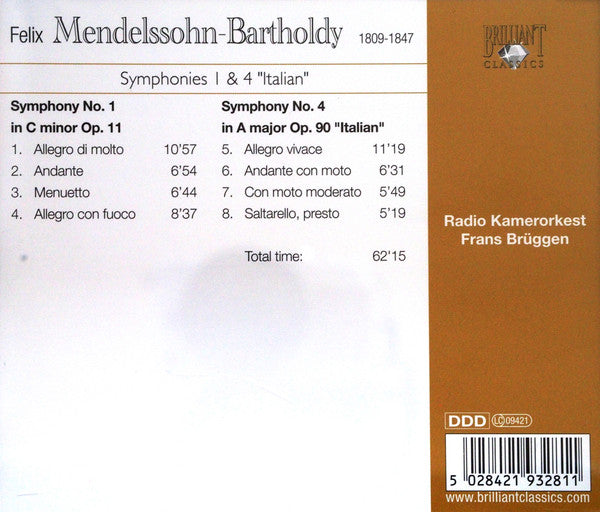 . Symphony No. 1 In C Minor Op. 11 . Symphony No. 4 In A Major Op. 90 "Italian"