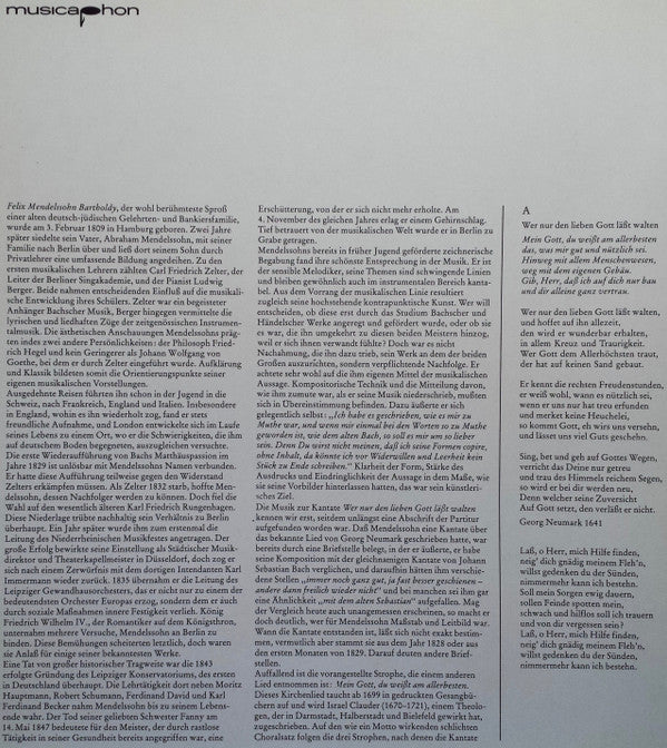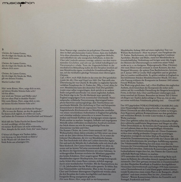 A1. "Wer Nur Den Lieben Gott Lässt Walten" - Kantate Für Sopran, Vierstimmingen Gemischten Chor Und Streicher A2. "Lass, O Herr, Mich Hilfe Finden" - Geistliches Lied Für Altstimme, Chor Und Orgel B1. "Christe, Du Lamm Gottes" - Kantate Für Vierstimmingen Gemischten Chor Und Kleines Orchester B2. "Hör Mein Bitten, Herr, Neige Dich Zu Mir" - Hymne Für Sopranstimme, Chor Und Orgel