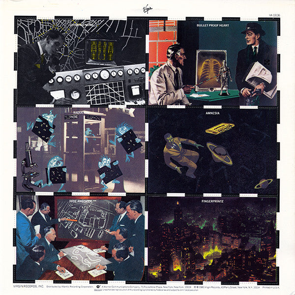 A1. Yes Eyes 3:00 A2. Houdini Love 3:05 A3. Criminal Mind 4:05 A4. Bullet Proof Heart 4:50 A5. Remorse Code 3:15 B1. Amnesia 2:45 B2. Ringing Tone 2:40 B3. Radiation 4:50 B4. Jabs 3:25 B5. Hide And Seek 4:50