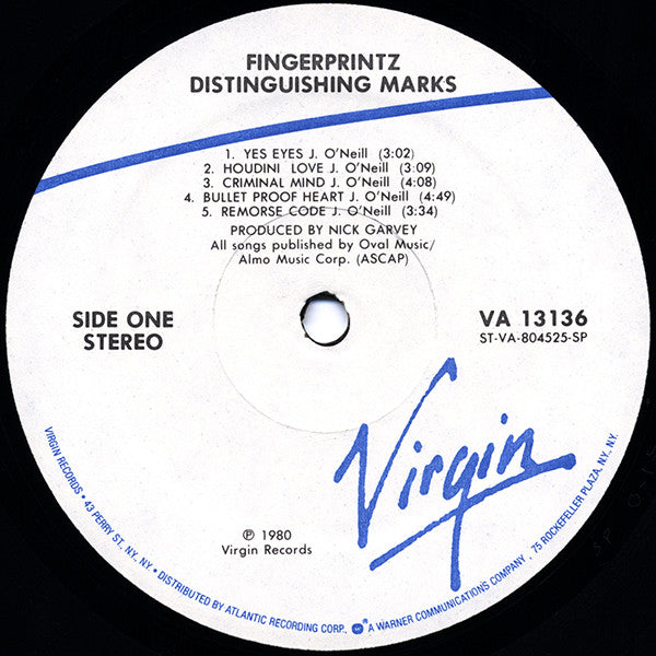 Phonographic Copyright (p) Virgin Records Copyright (c) Virgin Records Published By Oval Music Published By Almo Music Corp. Recorded At Underhill Studios Mixed At The Roundhouse Pressed By Specialty Records Corporation Distributed By Atlantic Recording Corporation