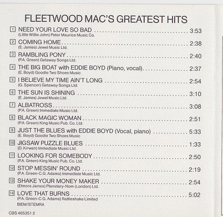 On Spine + CD: "Fleetwood Mac's Greatest Hits"