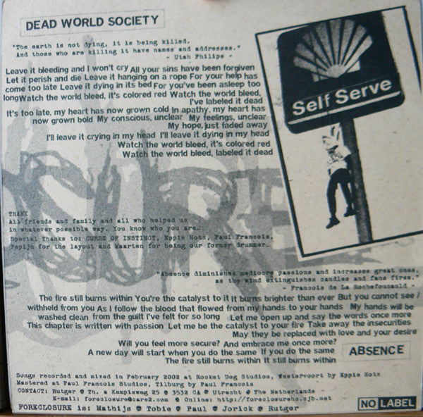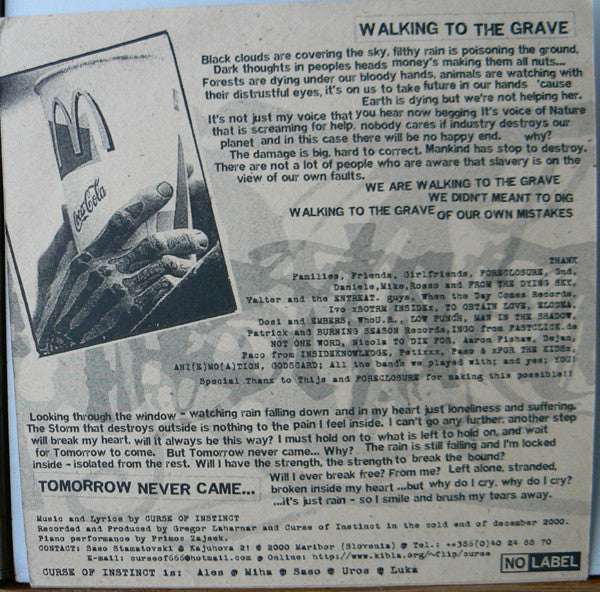 A1. Foreclosure - Dead World Society A2. Foreclosure - Absence B1. Curse Of Instinct - Walking To The Grave B2. Curse Of Instinct - Tomorrow Never Came