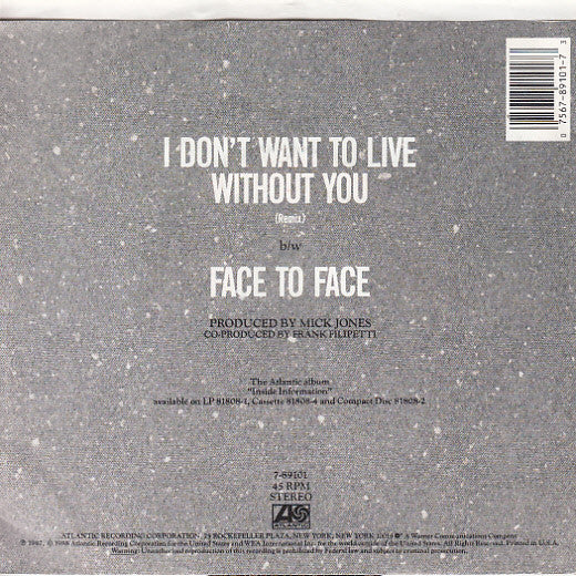 A. I Don't Want To Live Without You (Remix) 3:50B. Face To Face 3:53