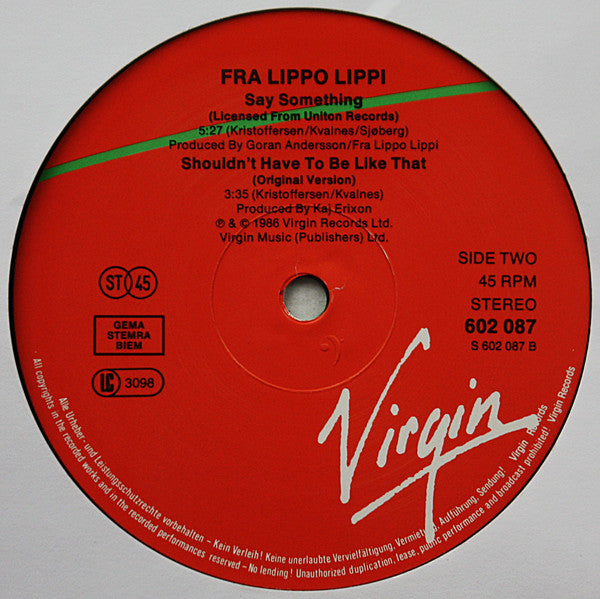 A1. Shouldn't Have To Be Like That 3:53 A2. The Distance Between Us 3:53 B1. Say Something 5:27 B2. Shouldn't Have To Be Like That (Original Version) 3:35