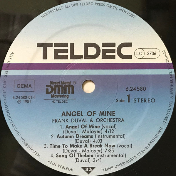 Frank Duval & Orchestra - Angel Of Mine (LP, Album, Gat)