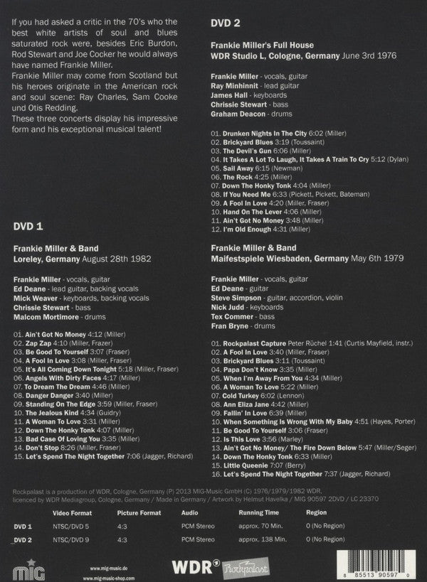 1. Ain't Got No Money 4:122. Zap Zap 4:103. Be Good To Yourself 3:074. A Fool In Love 3:085. It's All Coming Down Tonight 5:186. Angels With Dirty Faces 4:177. To Dream The Dream 4:468. Danger Danger 3:409. Standiong On The Edge 3:5910. The Jealous Kind 4:3211. A Woman To Love 3:3112. Down The Honky Tonk 4:0713. Bad Case Of Loving You 3:3514. Don't Stop 8:2615. Let's Spend The Night Together 7:061. Drunken Nights In The City 6:022. Brickyard Blues 3:113. The Devil's Gun 6:064. It Takes A Lot To Laugh,It Takes A Train To Cry 5:125. Sail Away 6:156. The Rock 4:257. Down The Honky Tonk 4:048. If You Need Me 6:339. A Fool In Love 4:2010. Hand On The Lever 4:0611. Ain't Got No Money 3:4812. I'm Old Enough 4:3113. Rockpalast Capture ( Peter Rüchel) 1:4114. A Fool In Love 3:4015. Brickyard Blues 3:1116. Papa Don't Know 3:3517. When I'm Away From You 4:3418. A Woman To Love 5:2219. Cold Turkey 6:0221. Ann Eliza Jane 4:4222. Fallin' In Love 6:3923. When Something Is Wrong With My Baby 4:5124. Be Good To Yourself 3:0625. Is This Love 3:5626. Ain't Got No Money/The Fire Down Below 5:4727. Down The Honky Tonk 6:3329. Little Queenie 7:0730. Let's Spend The Night Together 7:37
