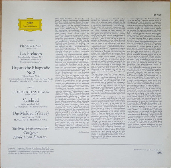 A1. Les Préludes Symphonische Dichtung Nr. 3 A2. Ungarische Rhapsodie Nr. 2 (Klavierfassung Nr. 2) B1. Vyšehrad (Mein Vaterland: Teil I) B2. Die Moldau (Vltava) (Mein Vaterland Teil II)