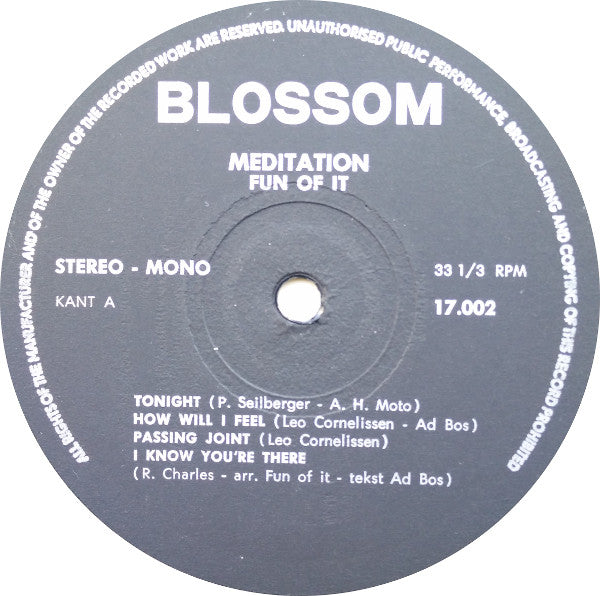 A1. Tonight A2. How Will I Feel A3. Passing Joint A4. I Know You're There B1. Bluesy Death B2. Meditation B3. Cool It Baby B4. Joint Ash
